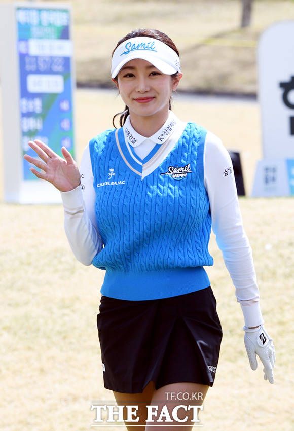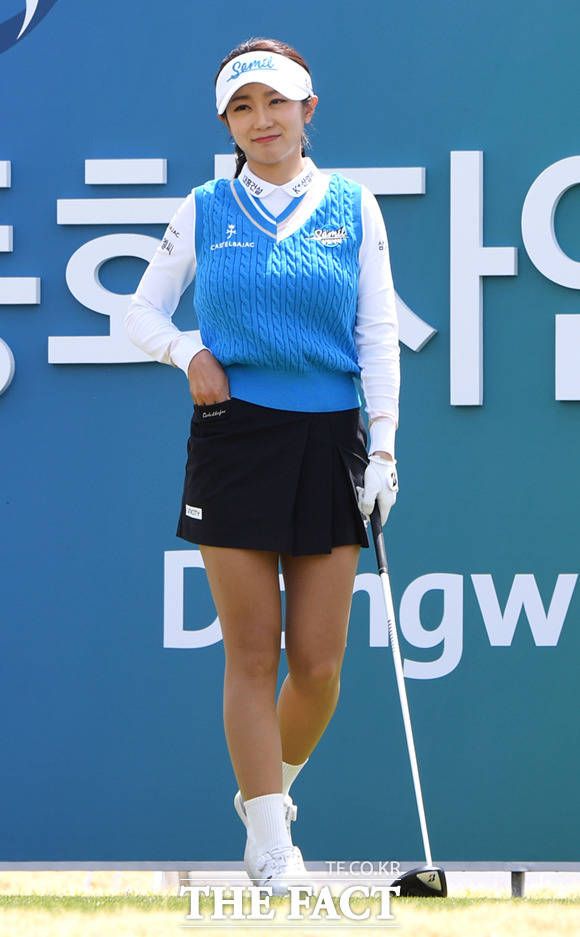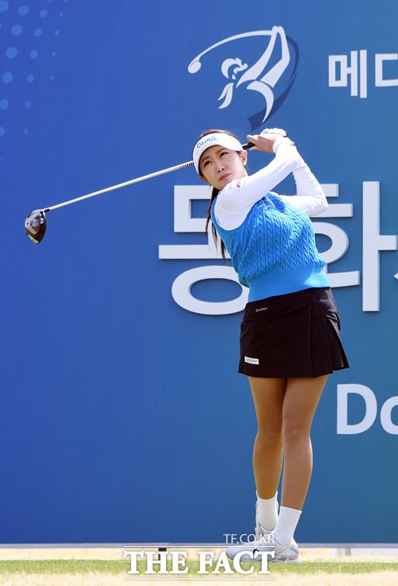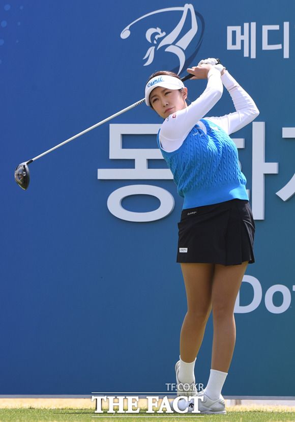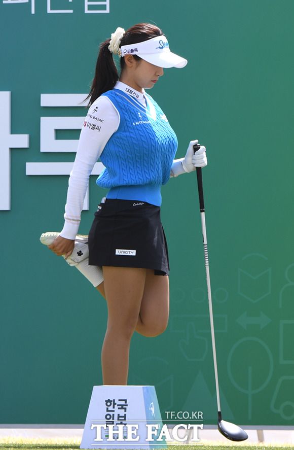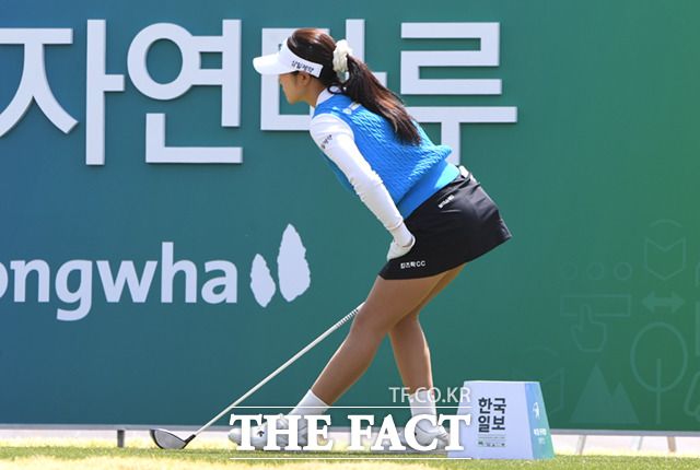 [더팩트ㅣ여주=이새롬 기자] 안소현이 14일 경기 여주시 페럼클럽에서 열린 한국여자프로골프(KLPGA)투어 '메디힐·한국일보 챔피언십' 2라운드에 참가해 티샷에 앞서 준비 운동을 하고 있다.