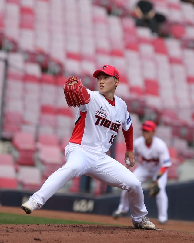KIA는 윤영철의 데뷔를 서두르지 않았다. 윤영철은 먼저 퓨처스리그에서 투구를 점검했고, 지난 8일 삼성 라이온즈 2군과의 경기에서 6이닝(93구) 9피안타 3볼넷 5탈삼진 3실점을 기록했다. 직구(41개)에 높은 비중을 뒀고 슬라이더(21개), 체인지업(16개), 커브(10개)를 섞어 구사했다. 윤영철은 6일 휴식 후 정규 시즌 마운드에 선다.