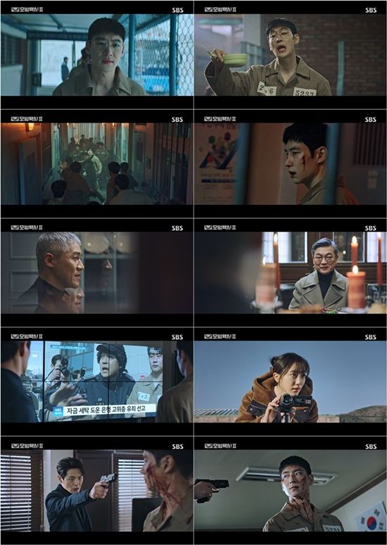 도기의 말에 발끈한 온하준이 카운팅을 시작하는 순간 반전이 일어났다. 금사회의 계략을 미리 알고 있던 도기와 장대표가 일부러 사지에 걸어 들어가 온하준과 교구장의 이목을 끌었고, 그동안 고은과 주임즈가 괴한들을 제압한 뒤 이시완을 재판정까지 에스코트해 증언을 무사히 마칠 수 있도록 판을 짰던 것. 또 한번 뒤통수를 맞은 온하준은 도기에게 총구를 겨눴고 이후 단발마 같은 총성과 함께, 서로의 안녕을 기원하던 무지개 식구들의 과거 모습과 함께 극이 종료됐다. 이에 팀원을 잃을 위기에 놓인 무지개 팀과 치명타를 입고 폭주하는 금사회의 엔드게임이 어떤 결말을 맞이할 지, '모범택시2' 최종화에 궁금증이 수직 상승한다.