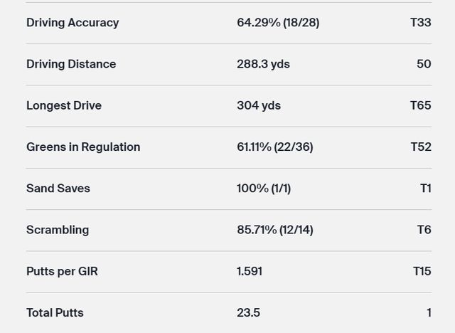 △DRIVING ACCURACY(페어웨이 안착률)=대부분 14개홀에서 페어웨이로 들어간 것을 %로 표시한 것.