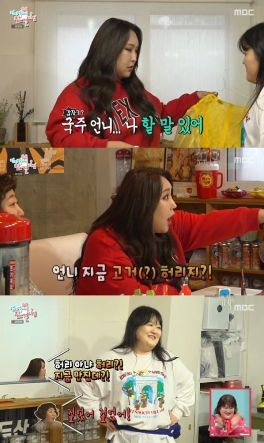 두 번째 손님은 풍자였다. 풍자 역시 오자마자 거칠게 숨을 쉬며 "사다리차 좀 불러줘. 에스컬레이터는 없어?"라고 했다. 풍자는 이국주의 옷 중 마음에 드는 걸 몸에 대보다가 "요즘 초심 잃었다. 말라깽이 됐다"고 말했다. 신기루는 "안전벨트 연장도 안 하냐"고 물었다. 이국주는 처음 듣는 얘기인 듯 신기해했다. 신기루는 다들 처음 듣는 얘기라고 하자 "나도 들어본 얘기다"고 둘러댔다.