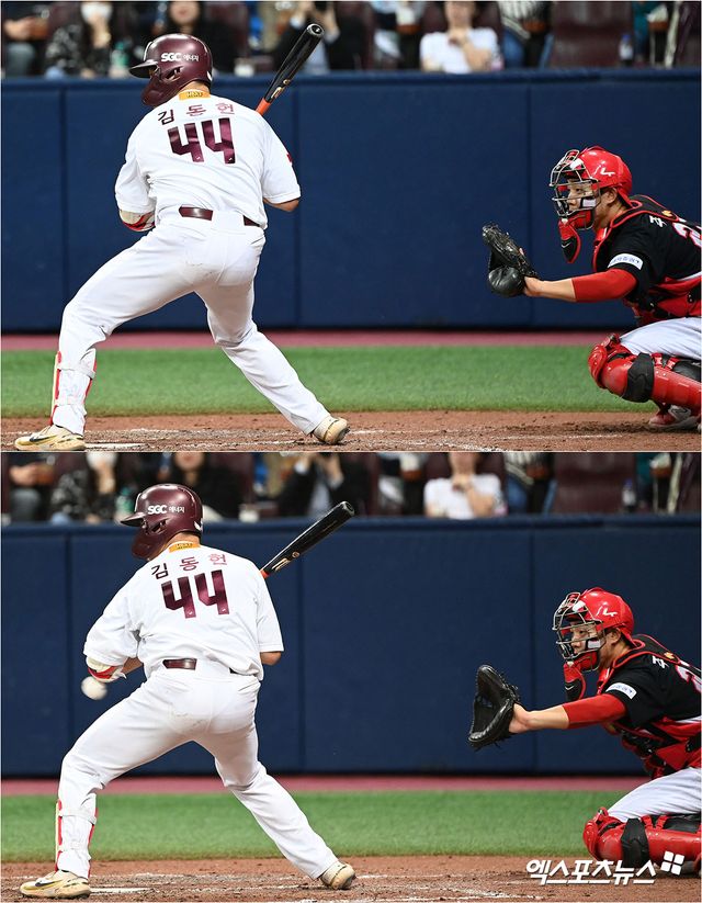 3회말 1사에서 선발투수 윤영철이 김동헌을 몸에 맞는 공으로 내보냈다. 윤영철의 137km/h 직구가 김동헌의 팔꿈치로 향한 것.