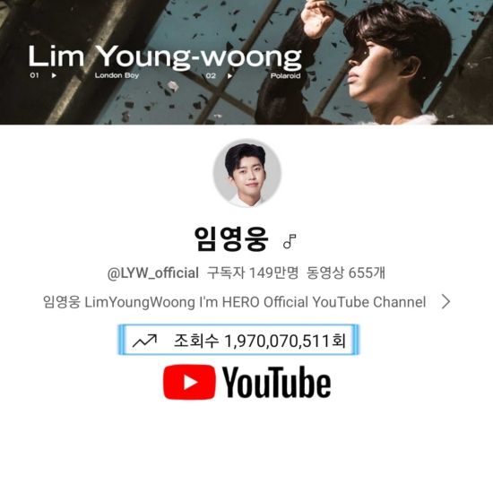 17일 기준, 임영웅의 공식 유튜브 채널인 '임영웅'은 총 조회수 19억 7천만 뷰를 돌파했다.