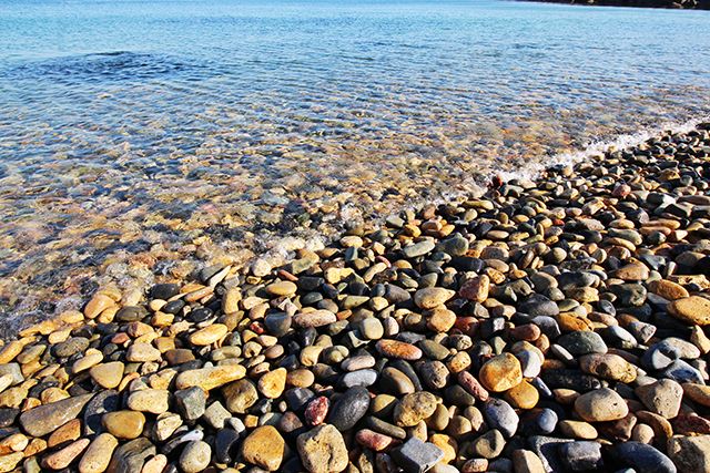 파도 한 점 없이 거울처럼 잔잔한 바다서 유리알처럼 빛나는 몽돌이 눈에 띈다. 몽돌은 파도와 해류, 바람 등의 영향으로 닳고 닳아 동글동글해진 돌을 말한다. 촉감이 보드랍고 따뜻해서 어루만지는 것만으로 각별한 체험이다.