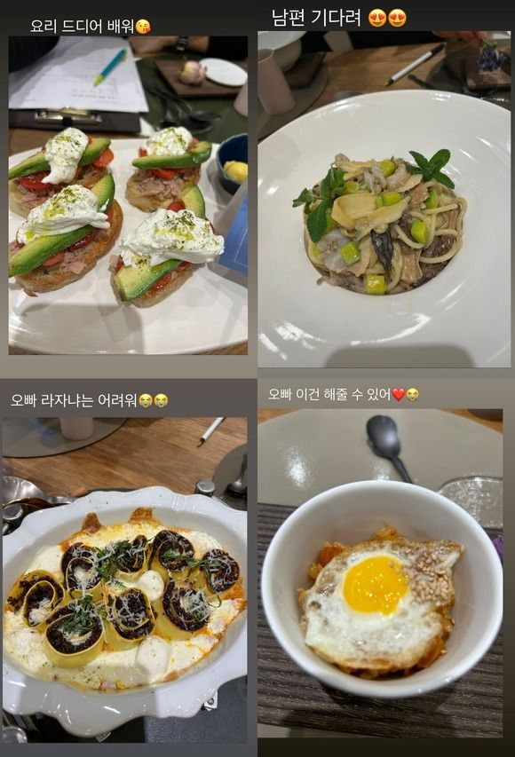 그러나 곧 그는 "오빠 라자냐는 어려워"라고 어려움을 토로하기도 했고 "오빠 이건 해줄 수 있어"라며 밥에 계란 프라이 올린 사진을 공개했다.