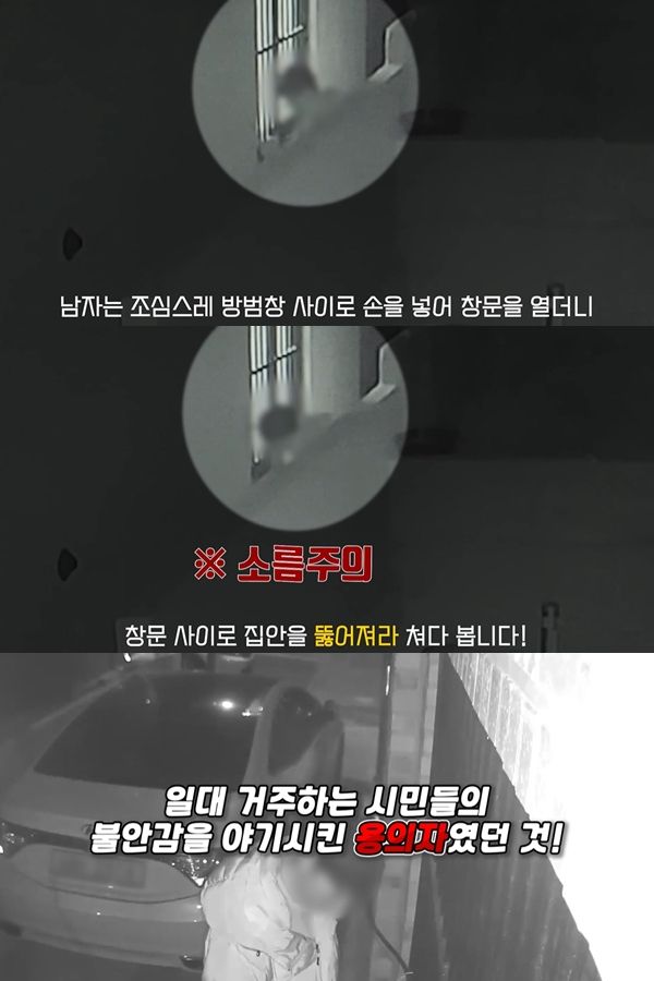 A씨는 잠겨 있지 않은 1층 집들의 창문을 열어 염탐하는 행동을 반복한 것으로 알려졌다. 경찰은 "집에 혼자 있는데 창문이 열려 있다"라는 신고를 수차례 접수하자 관할 지구대에 A씨의 사진을 공지하고 수사에 촉각을 곤두세웠다.