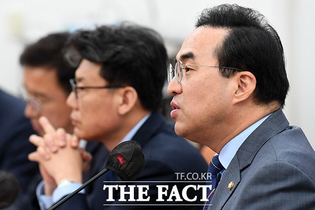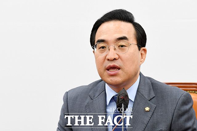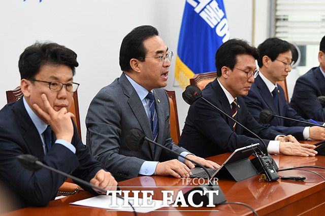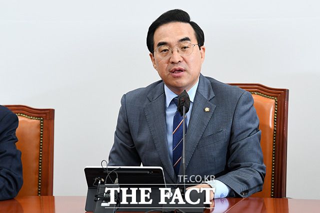 [더팩트ㅣ국회=남용희 기자] 박홍근 더불어민주당 원내대표가 18일 오전 서울 여의도 국회에서 열린 원내대책회의에서 발언을 하고 있다.