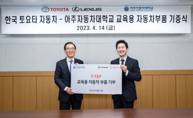18일 한국토요타자동차에 따르면 이번 기부는 아주자동차대학교 학생들에게 자동차 정비 기술 습득을 위한 다양한 실습 환경 제공으로 높은 기술력을 갖춘 인재육성을 지원하기 위해 진행했다.