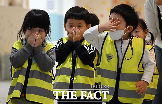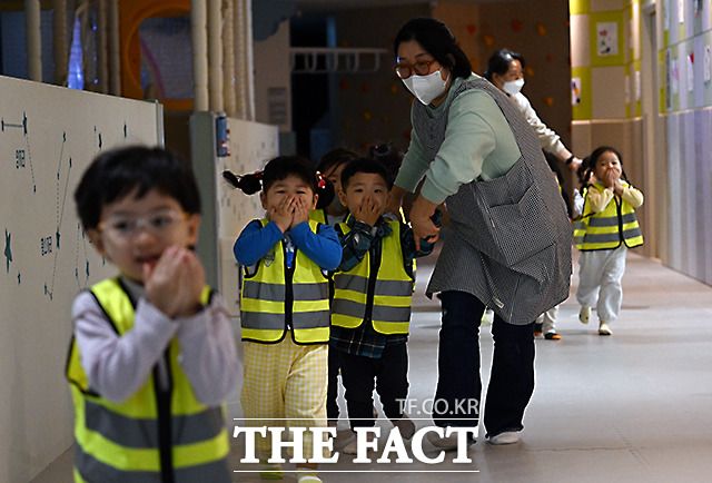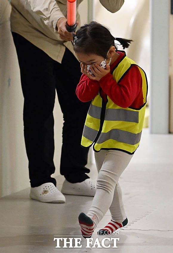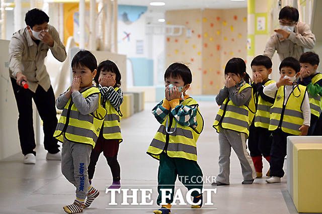 [더팩트ㅣ임영무 기자] 어린이실내놀이터 화재대피훈련이 18일 오전 서울 강남구 일원어린이실내놀이터에서 실시된 가운데 어린이들이 화재 상황을 가정한 대피 훈련을 하고 있다.