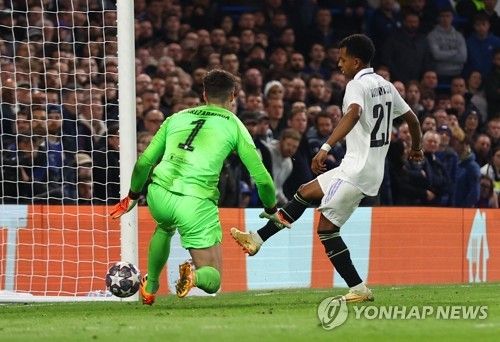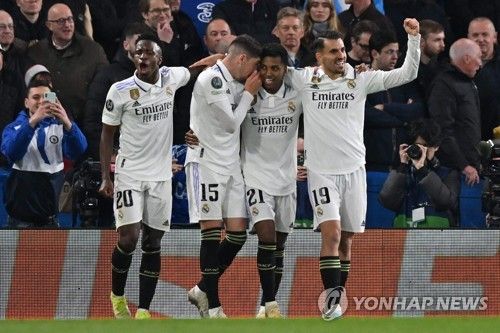 카를로 안첼로티 감독이 이끄는 레알은 19일 영국 런던 스탬퍼드 브리지에서 열린 2022/23 UEFA 챔피언스리그 8강 2차전에서 호드리구가 후반 두 골을 터트리는 활약에 힘입어 홈 팀을 2-0으로 이겼다.