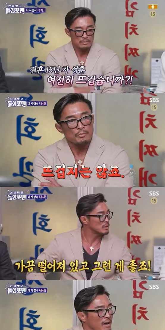 또 추성훈은 아내 야노시호와의 결혼 생활도 덧붙였다. 이상민은 "결혼 15년차인데 아직 뜨겁냐"고 물었고, 추성훈은 "뜨겁지는 않다. 그냥 각자 일 잘하고, 떨어져 있고 그러면 더 좋은거지"라고 말해 큰 웃음을 줬다.