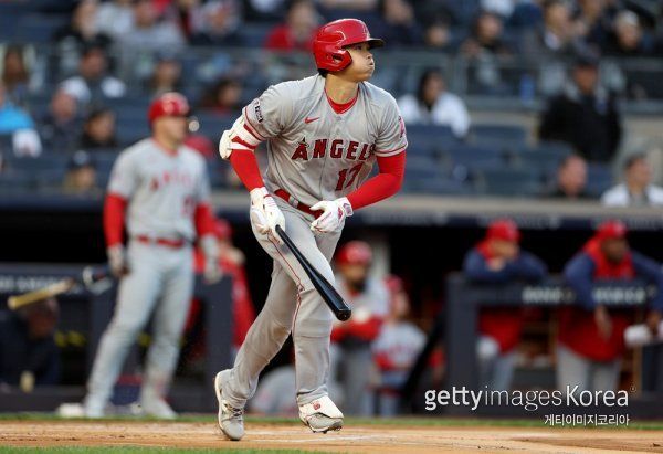 2번 지명타자로 선발 출전한 오타니는 첫 타석이던 1회 초 무사 2루에서 상대 선발 클락 슈미트를 상대로 3구째 가운데 몰린 시속 143km의 스위퍼를 받아쳐 우측 담장 뒤쪽 양키스 불펜에 떨어지는 투런 포를 폭발했다. 오타니의 시즌 4호 홈런이자 양키스와 18경기에서 8번째 터트린 대포다.