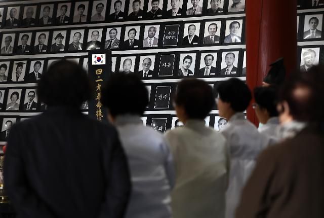 4·19혁명 기념일을 하루 앞둔 18일 서울 강북구 4·19 민주묘지 유영봉안소에서 추모제가 열리고 있다. [사진=연합뉴스]