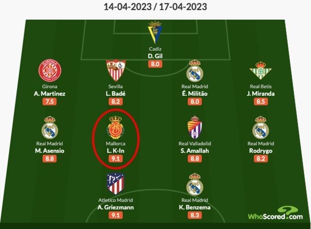 이강인은 ‘후스코어드닷컴’ 선정 유럽 5대리그 이주의 팀, 라리가 평점 베스트 일레븐에도 들었다. 최고의 활약을 펼친 이강인은 여러 빅클럽들의 러브콜을 받고 있다.