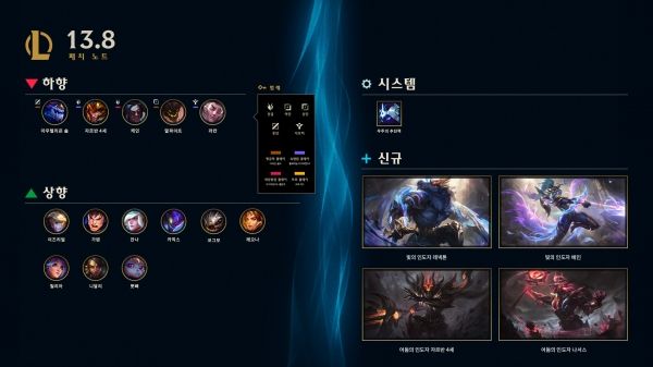 리그 오브 레전드의 13.8 패치가 2023년 4월 19일에 본섭에 적용될 예정입니다. 이번 패치는 MSI를 앞두고 대회와 솔로 랭크에서 활약하던 챔피언들의 밸런스 조정을 중점적으로 다루고 있습니다.
