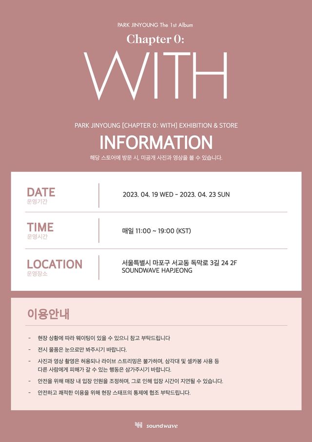 박진영은 데뷔 10주년을 맞아 지난 1월 발매한 첫 솔로 앨범 ‘Chapter 0: WITH’의 팝업스토어를 케이타운포유 인사점, 에버라인 더현대서울에서 성황리에 마무리했다. 더불어 팬들의 사랑에 보답하고자 세 번째 팝업스토어를 기획해 4월 19일부터 4월 23일까지 만나볼 수 있다. 특히 박진영은 앨범 발매 이후 국내 팬콘서트를 비롯해 일본, 태국, 필리핀, 대만 팬콘서트를 성료하며 전 세계 팬들과 잊지 못할 순간을 함께했다.