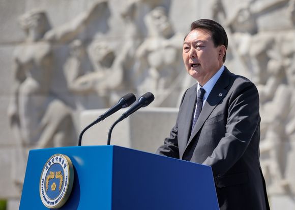 윤 대통령은 "피와 땀으로 지켜온 민주주의가 늘 위기와 도전을 받고 있다"면서 "허위 선동, 가짜뉴스, 협박, 폭력, 선동, 이런 것들이 진실과 자유로운 여론 형성에 기반해야 하는 민주적 의사결정 시스템을 왜곡하고 위협하고 있다"고 지적했다.