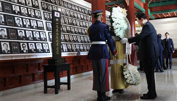 [프라임경제] 윤석열 대통령은 19일 오전 국립4.19민주묘지에서 개최된 제63회 4.19혁명기념식에 참석해 "4.19혁명 열사의 뒤를 따라 어떠한 희생을 치르더라도 자유민주주의를 확고히 지켜내겠다"고 밝혔다.