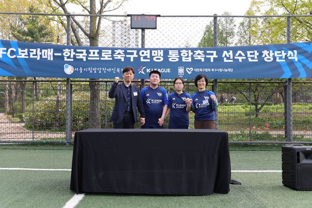 [인터풋볼] 신동훈 기자 = 한국프로축구연맹(총재 권오갑, 이하 ‘연맹’)은 18일(화) 보라매공원(서울 동작구 소재)에서 서울시립발달장애인복지관과 업무협약을 맺고 통합축구팀 ‘FC보라매’ 창단식을 가졌다.