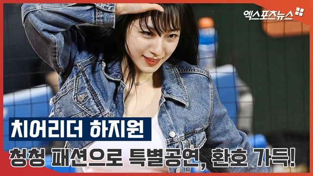 (엑스포츠뉴스 대전, 김한준 기자) 19일 오후 대전 한화생명 이글스파크에서 열린 ’2023 신한은행 SOL KBO리그’ 두산 베어스와 한화 이글스의 경기, 한화 치어리더 하지원이 멋진 공연을 선보이고 있다.