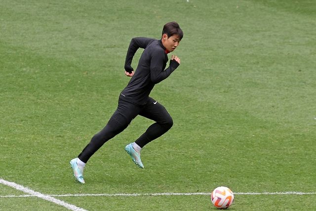 이강인이 지난달 25일에 울산 문수 축구경기장에서 오픈 트레이닝을 하고 있다. / 이하 뉴스1