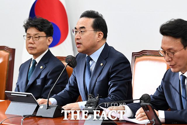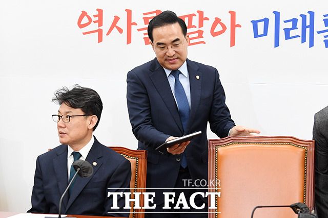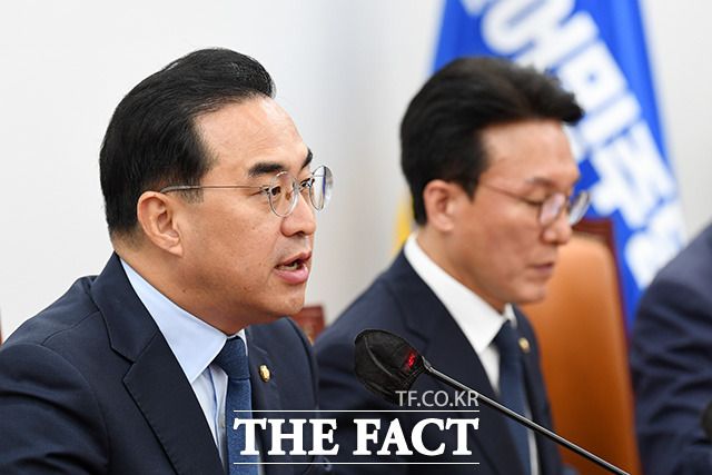 [더팩트ㅣ국회=남용희 기자] 박홍근 더불어민주당 원내대표가 20일 오전 서울 여의도 국회에서 열린 정책조정회의에서 발언을 하고 있다.