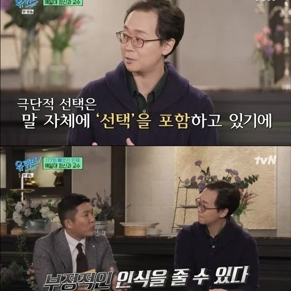 나종호 예일대 정신과 교수는 2023년 1월 18일 tvN 유키즈온더블록 177회에 출연해 '극단적 선택' 용어 사용에 대한 자신의 생각을 피력했다. / tvN 유키즈온더블록 화면 캡쳐
