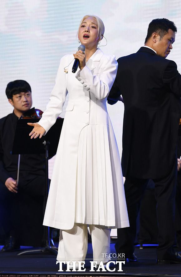 가수 바다가 20일 서울 여의도 63컨벤션센터 그랜드볼룸에서 열린 제43회 장애인의 날 기념식에서 축하 공연을 하는 가운데, 목에 SES 이니셜 목걸이가 보이고 있다. /이새롬 기자