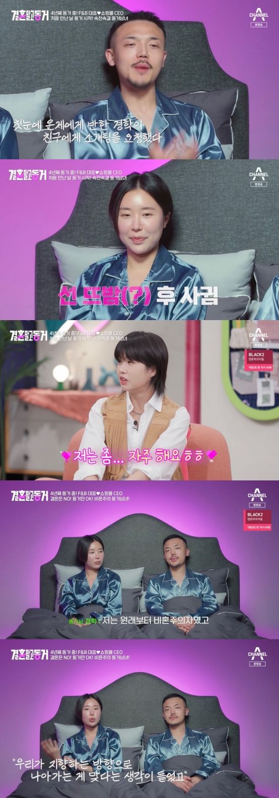 21일 방송된 채널A '결혼 말고 동거'(이하 '결말동')에서는 카페·도넛 사업을 하는 도경학과 쇼핑몰을 운영하는 이은제 커플이 새로운 동거남녀로 합류한 모습이 전파를 탔다.