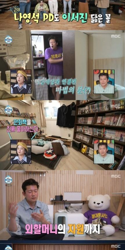 이후 김대호 아나운서의 집이 공개됐다. 자연이 둘러싼 산속 마을에 위치한 김대호 아나운서의 집은 그야말로 자유분방했다. 주방 뒤편에는 마법의 문이 있었고, 침실에는 만화책이 가득했다. 심지어 반려묘부터 도롱뇽, 도마뱀, 민물 새우와 망둥이를 포함한 물고기 등 무려 16종의 동물들이 살고 있었다.