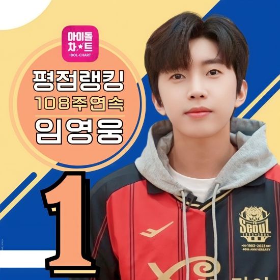 이로써 임영웅은 아이돌차트 평점 랭킹에서 108주 연속 1위에 오르게 됐다.