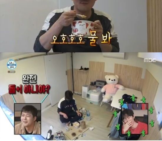 김대호는 족발에 이어 고추, 달걀, 후춧가루를 넣은 라면을 한 그릇 먹고 집안으로 내려가 미리 주문해 놓은 빙수를 먹었다. 김대호는 테이블 없이 방바닥에서 빙수를 먹어 기안84를 연상하게 했다. 기안84는 다른 사람이 방바닥 식사하는 것을 보더니 "되게 궁상맞다. 별로다"라고 말했다.