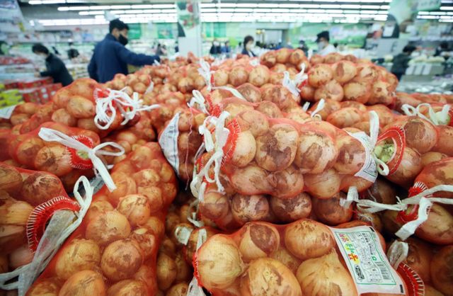 양파 가격은 지난해 4월14일 기준 양파 15㎏ 도매가가 7074원에 불과했지만 재고 부족 등 영향으로 1년 만에 2만5520원으로치솟았다. 양파 출하 증가로 상승세는 둔화됐지만 여전히 전년보다 3배 이상 수준의 가격 유지하고 있다.