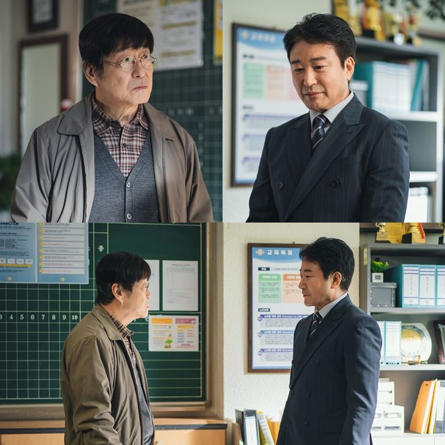 오늘 공개된 스틸에는 공찬식과 장호의 심상치 않은 대치 상황이 담겨 있다. 공찬식이 장호를 만나기 위해 그의 ‘올드스쿨’로 찾아와 어색하게 재회한다. 만남도 잠시 공찬식과 장호는 극과 극의 반응을 보이고 있어 이들 사이에 어떤 이야기가 오고 갔을지 관심이 모아진다.
