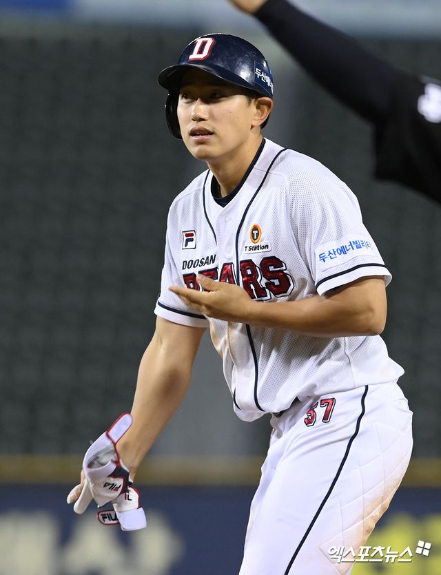 7회말에는 해결사로 나섰다. 두산이 8-1로 앞선 1사 2·3루 찬스에서 우중간을 가르는 2타점 3루타로 스코어를 10-1로 만들었다. 지난해 군 제대 후 1군 복귀 경기(2022년 6월 21일 인천 SSG전)에서 3안타를 때려낸 이후 10개월 만에 한 경기 3안타의 기쁨을 맛봤다.