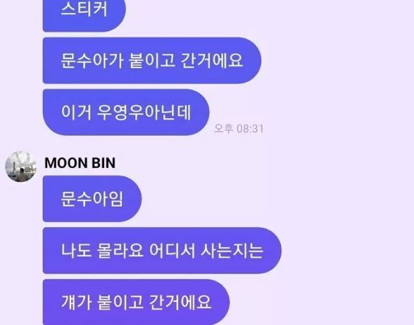 이후 문빈은 프라이빗 메신저 '버블'에서 팬들과 대화를 나누던 중 스티커에 대해 "문수아가 붙인 거다"라고 밝혔다. 문수아 또한 "팬이 주신 내 스티커인데, 오빠한테 하나 붙였다"고 설명했다.