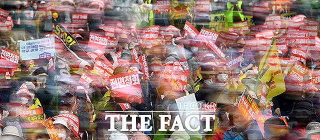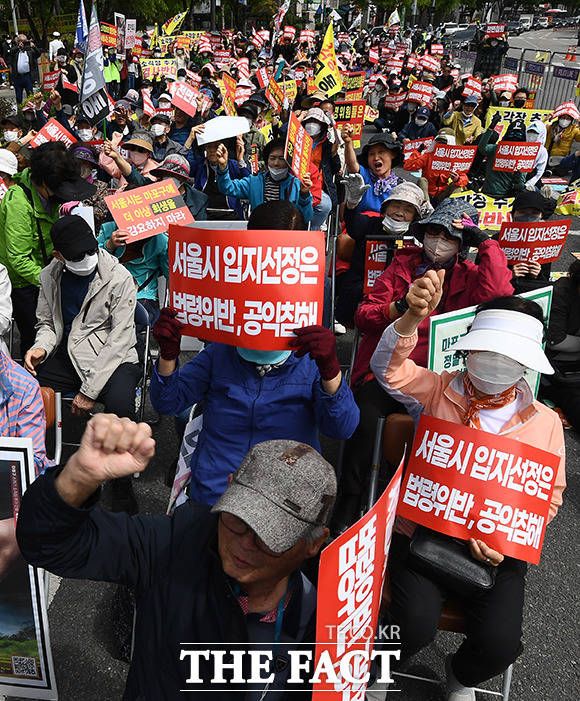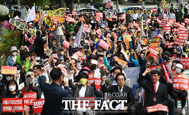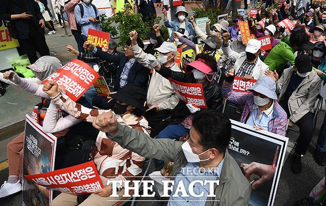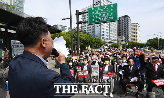 [더팩트ㅣ이동률 기자] 마포소각장백지화투쟁본부를 비롯한 시민단체 회원들이 22일 오후 서울 마포구청 앞에서 소각장 저지 주민 총궐기 집회를 열고 있다.