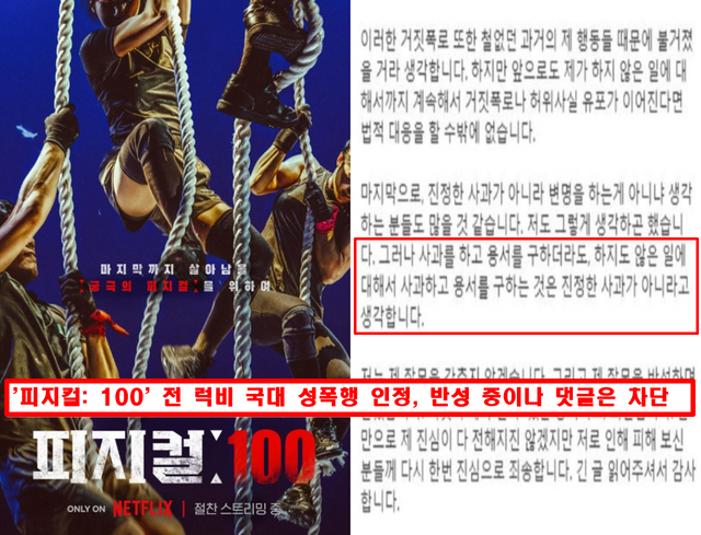 여자친구를 성폭행하고 불법 촬영한 혐의로 기소된 전 국가대표 럭비 선수의 첫 재판 결과가 나오며, '피지컬: 100' 출연자들의 논란이 재조명 됐다.