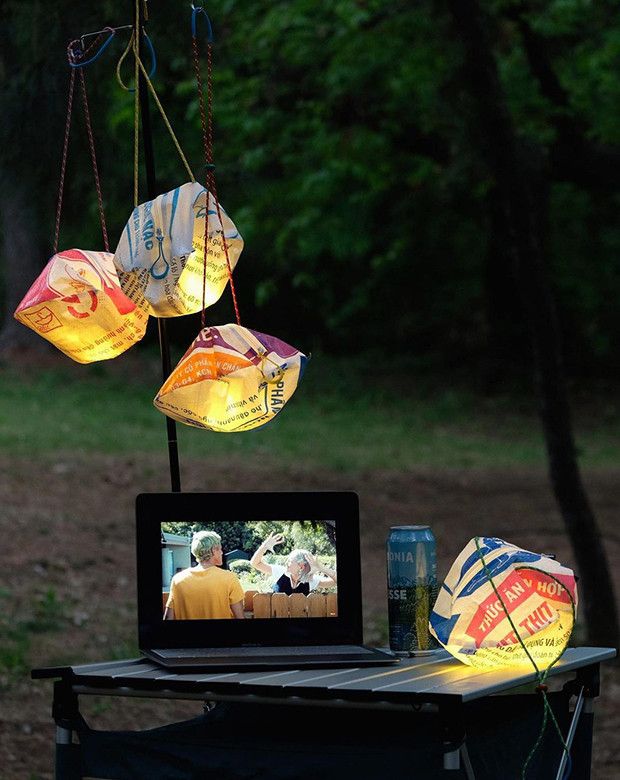 ‘이티씨 블랭크’는 폐자원을 모아 오브제를 만든다. 쓰레기만이 가진 질서 없는 형태와 비비드한 색감에서 영감을 받았다. “더 이상 쓰레기가 아닌 쓰레기를 만든다.”는 브랜드의 철학처럼 불쾌하게만 여겨졌던 것들도 새롭게 변한 모습을 보면 새삼 매력적이고 귀엽게 느껴진다. 특히 폐포대자루로 만든 램프는 풍선 모양 조명에 끈이 달려있어 휴대가 용이해 환경을 생각하는 캠퍼에게도 적극 추천한다.