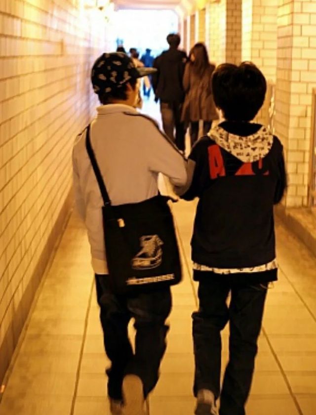아역 시절 손을 잡고 걷고 있는 두 사람