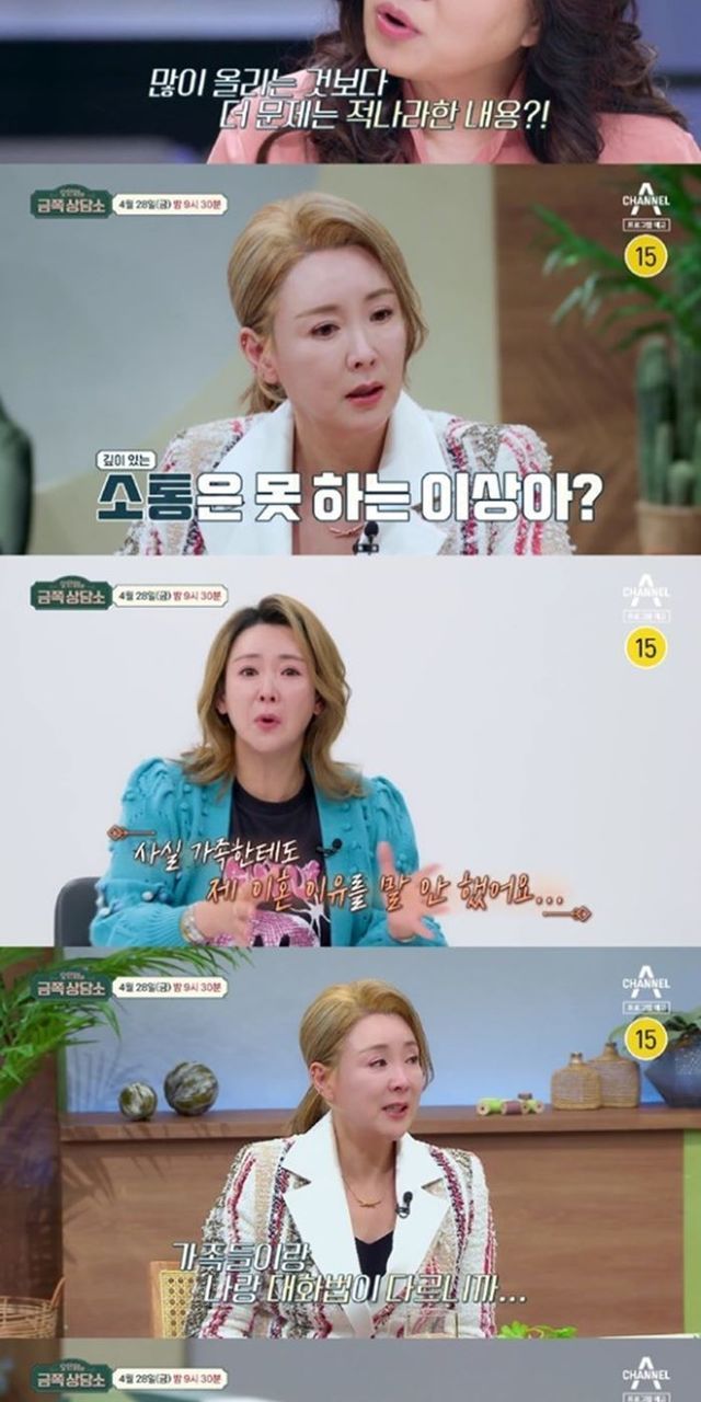 이상아는 "아직까지 제 가족들조차 저의 이혼 사유를 알지 못한다. 다른 가족들과 다르게 혼자 대화법이 다르다"고 말하며 눈물을 쏟아냈다.