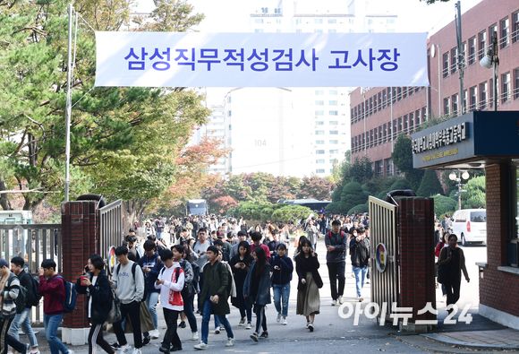 삼성그룹 신입공채 직무적성검사(GSAT) 마치고 고사장 나오는 취준생들. [사진=정소희 기자]