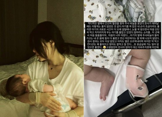 이어 "아기의 발에 주삿바늘이 들어가고는 내 온 몸에 힘이 풀렸고 연신 미안하다는 말밖에 나오지 않았다. 검사 결과는 모두 이상 없었고 아직도 열은 오르락내리락하지만 약 먹고 컨디션도 꽤 좋아지고 맘마도 잘 먹고 잘 잔다"라고 덧붙였다.