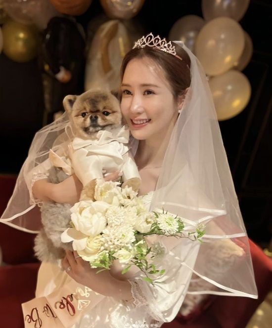 공개된 사진에는 새하얀 드레스에 면사포를 쓰고 티아라까지 착용한 예비신부 이다해의 아름다운 비주얼이 담겼다. 이다해의 품에 안긴 반려견 역시 새하얀 의상을 입고 웨딩 분위기를 연출해 눈길을 끌었다.