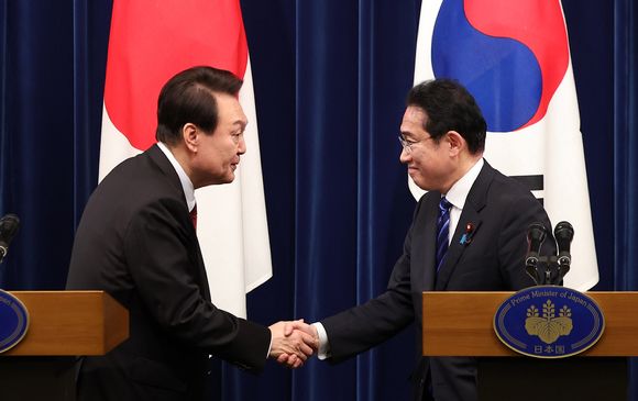 한미일 동맹은 여러모로 중국은 두려워하고 미국은 원하는 방향이다. 중국이 대만을 침공할 때 동맹으로서 서해에서 작전을 수행하거나 지원해야 하는 최인접국의 상황 속에서 미국과의 동맹을 파기할 생각이 없는 한, 한국은 일본을 사이에 낀 동맹을 통해 혹시 모를 안보 공백을 채워야 할 필요성이 존재한다. 윤석열 정부는 국내 여론의 비난을 감수하고 한일관계 개선을 위해 역사적으로 유례없는 적극적인 자세를 보여줬고, 일본은 이 부분에 대해 국내적으로 아직 상당한 혼선을 겪고 있는 것으로 보인다.