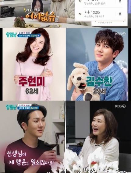 바로 트로트 디바 주현미였다. 김수찬은 주현미를 위해 해삼과 회를 직접 손질했고, 주현미가 지루하지 않게 남진 성대모사로 재롱까지 부렸다. 김수찬은 주현미와 5시간 20분 통화를 했을 정도로 33살 차를 뛰어넘은 선후배 케미를 보여줬다.