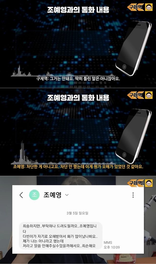 유튜버 구제역과 조예영이 나눈 통화 내용