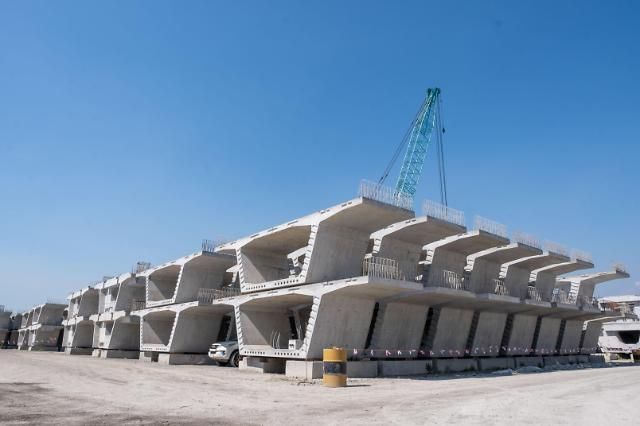 필리핀 남북 철도사업에 참여한 현대건설이 교량 건설을 위해 만들어 놓은 콘크리트 세그먼트가 쌓여 있다. [사진=아시아개발은행(ADB) 제공]