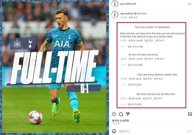 팬들 민심도 폭발했다. 토트넘 팬들은 구단 SNS 채널을 찾아 "콘테 감독이 옳았다", "어처구니가 없는 클럽", "원정을 떠난 팬들에게 사과해라"라고 분노했다.