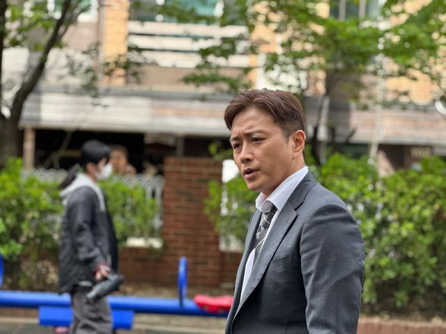 공개된 사진 속 진태현은 슈트 차림으로 놀이터에 서서 진지한 표정으로 연기에 임하는 모습이다.
